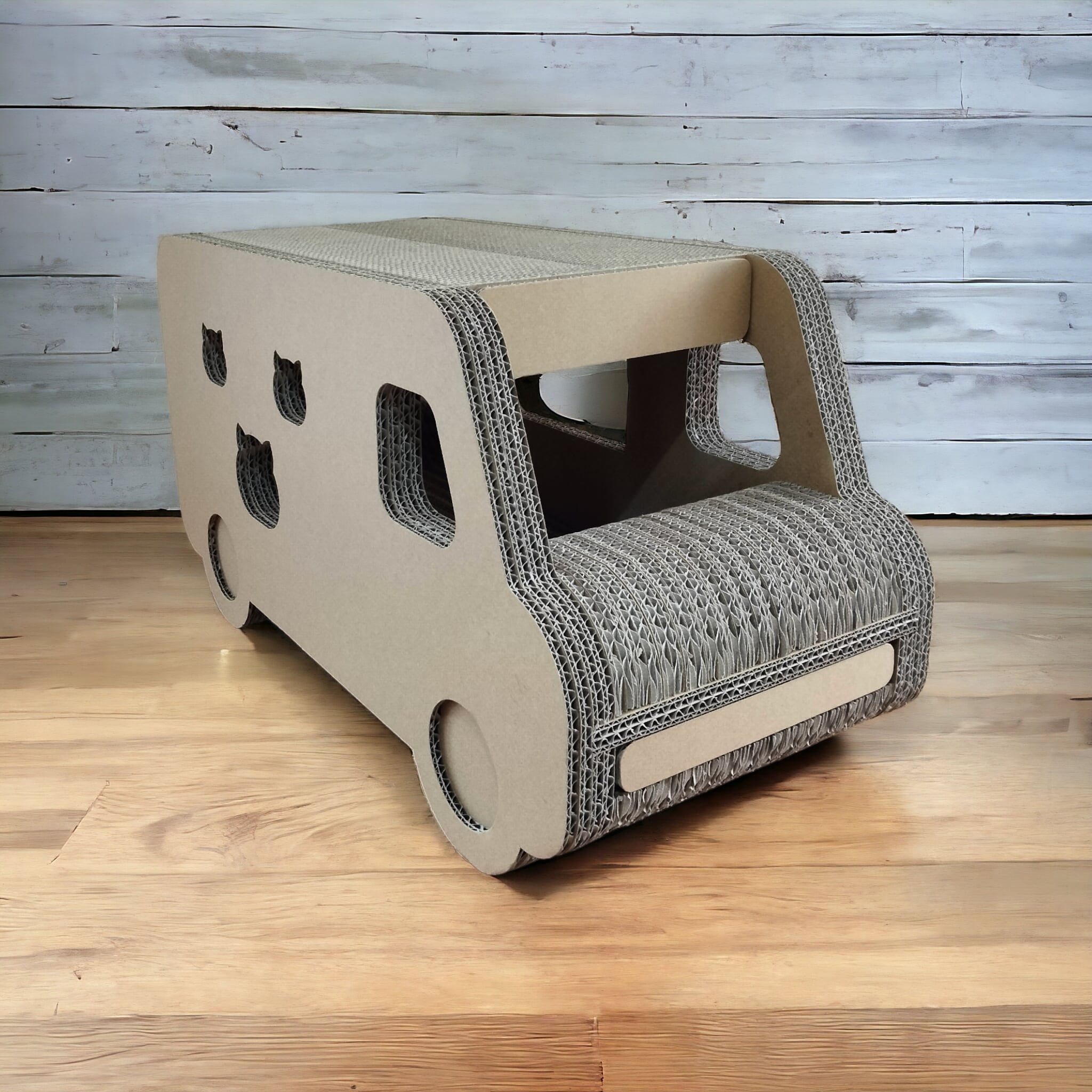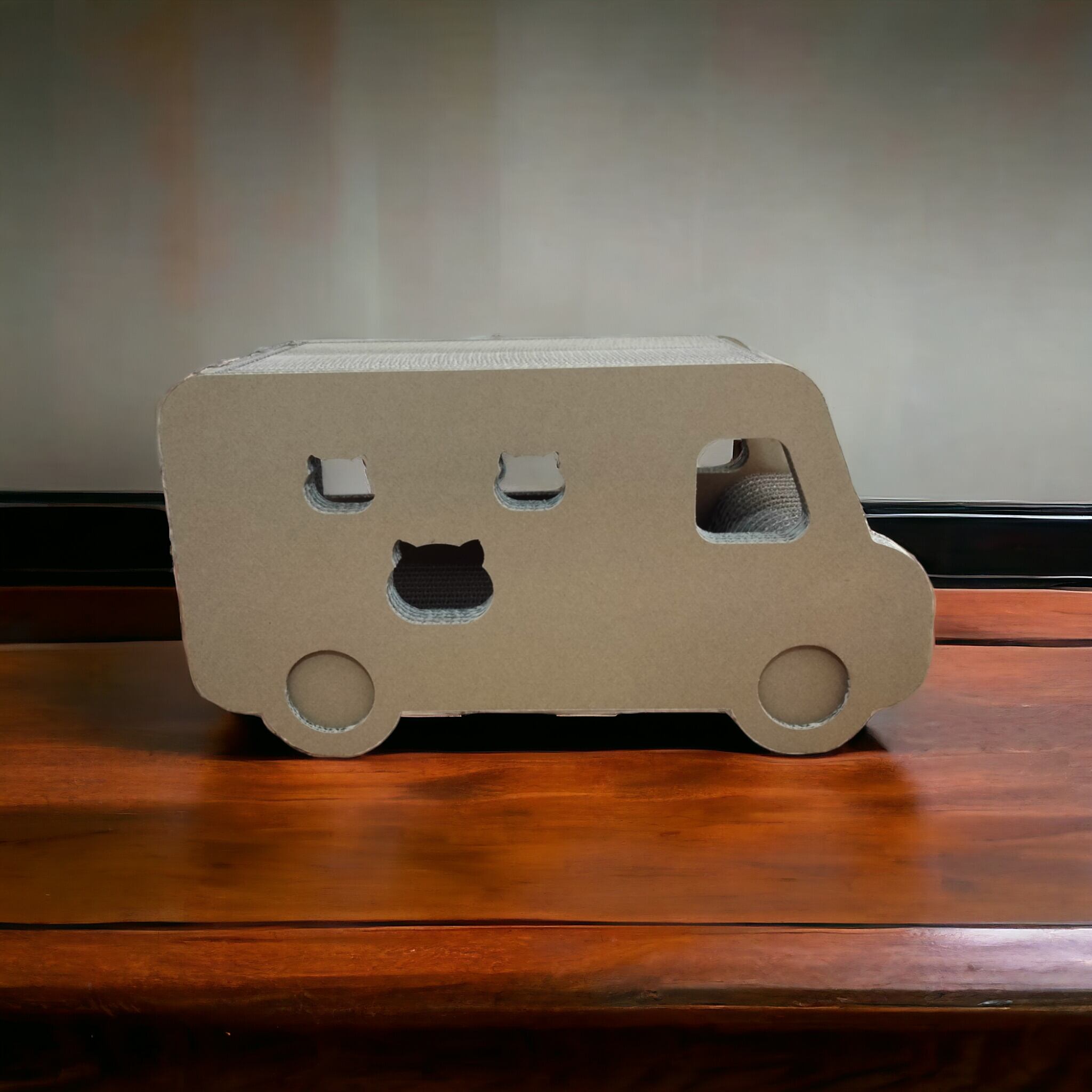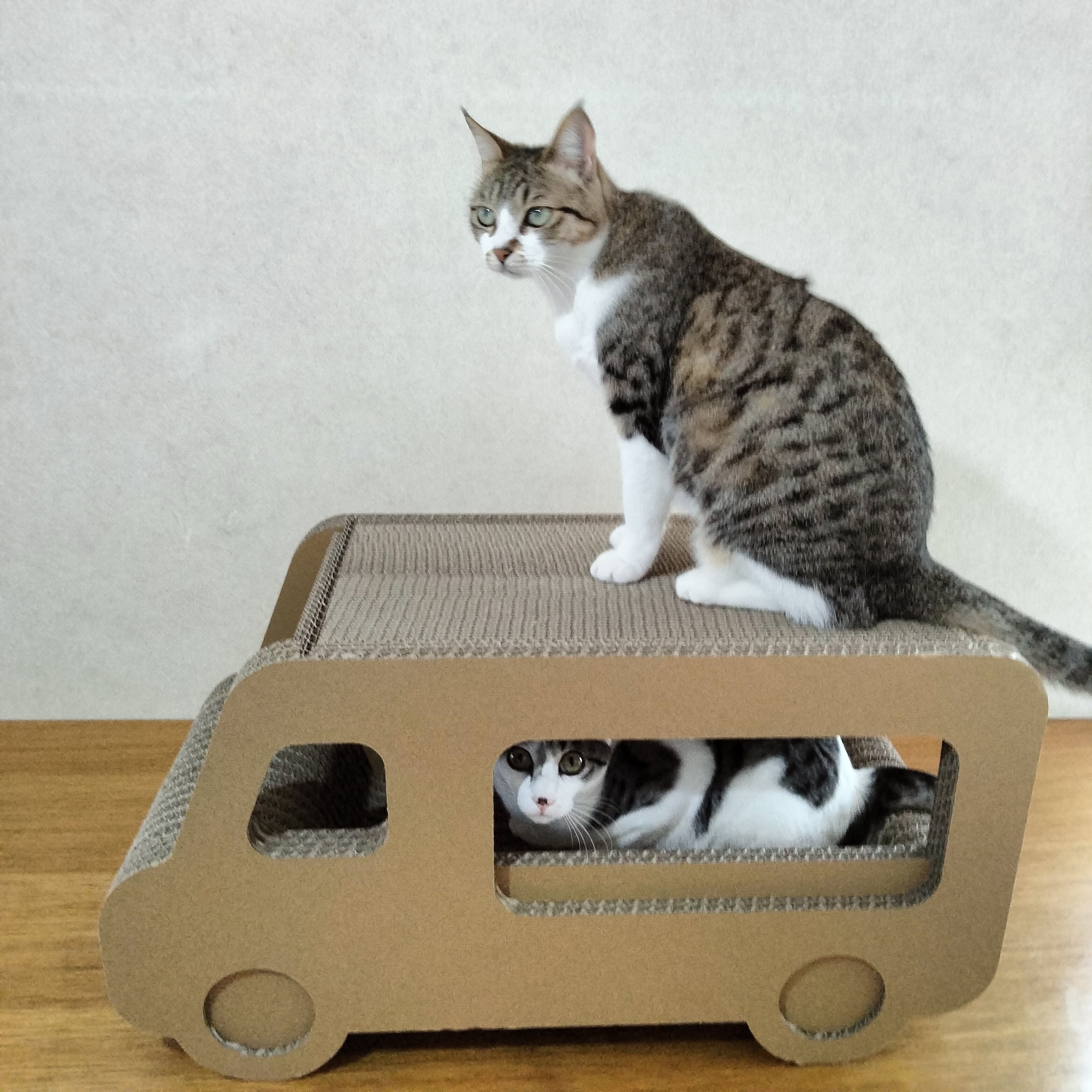 ネコちゃんとの特別なひと時を共有できる、バス型ねこハウス&爪とぎで、愛情いっぱいのおもてなしを。是非、お手元にひとついかがでしょうか。