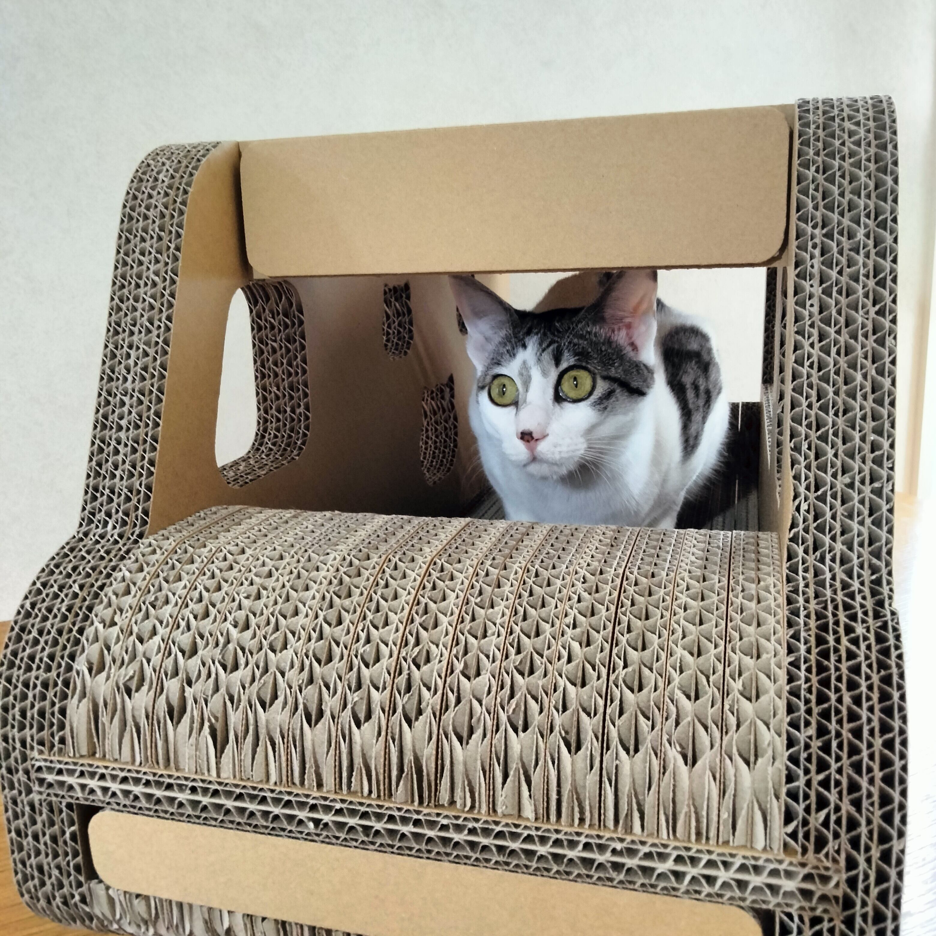 ダンボールでできた可愛らしいねこハウス&爪とぎ!